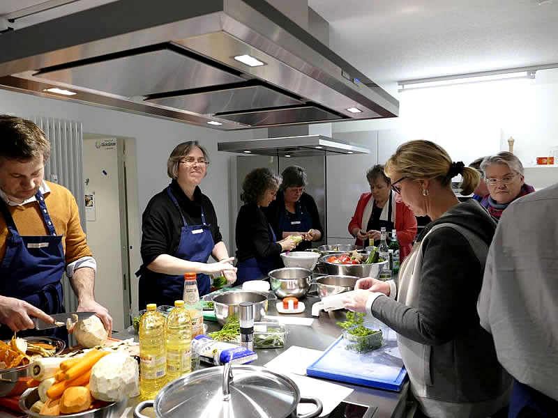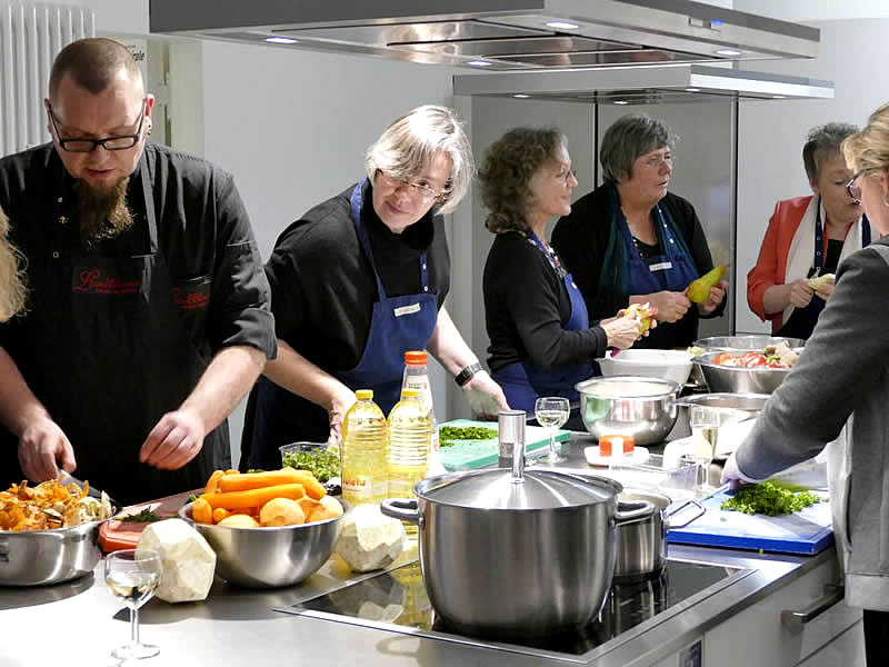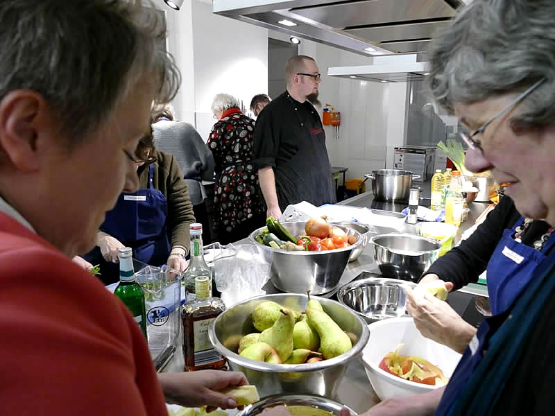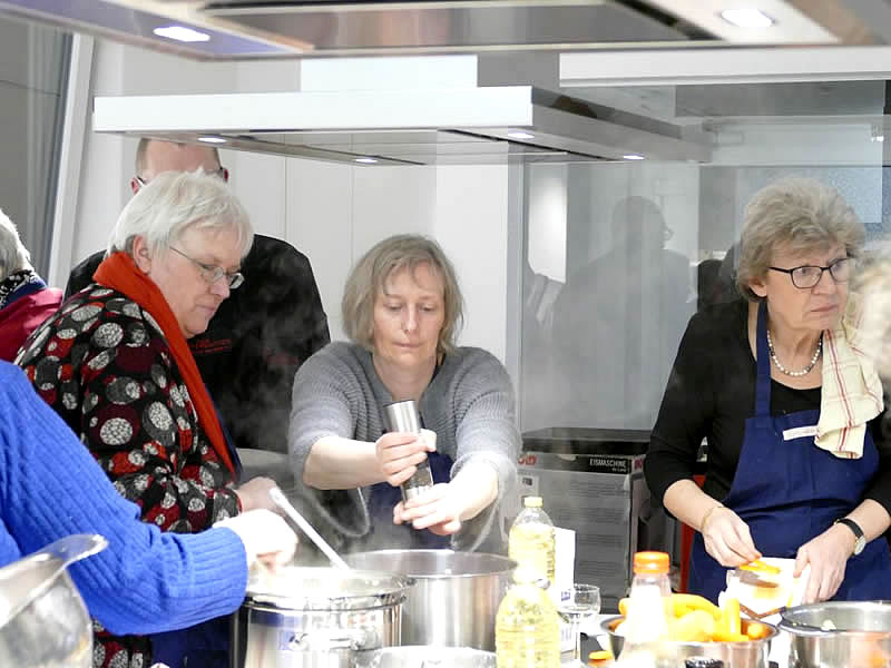 Fotogalerie - Ehrenamtliche und hauptamtliche Mitarbeitende der Evangelischen Frauenhilfe in Westfalen kochen ein 5-Gänge-Menue