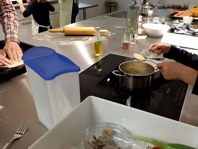 In den Herbstferien wurden in der Soester Eventkochküche der Evangelischen Frauenhilfe in Westfalen endlich wieder die Löffel geschwungen. Insgesamt acht kleine und acht große Köchinnen und Köche nahmen an den beiden Kochworkshops für Eltern und Kinder teil. Die Kochkurse wurden großzügig finanziell unterstützt durch die Deutsche Postcode-Lotterie. Teilnehmer*innen der Deutschen Postcode Lotterie in NRW unterstützen mit dem Kauf der Lose diese Kursangebote.
